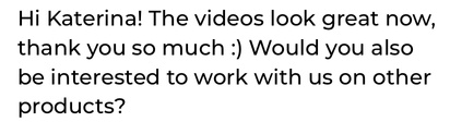 I I will start working on the script, which I will send to you for approval. When the products arrive I will start creating content. which I will send to you by the agreed date.